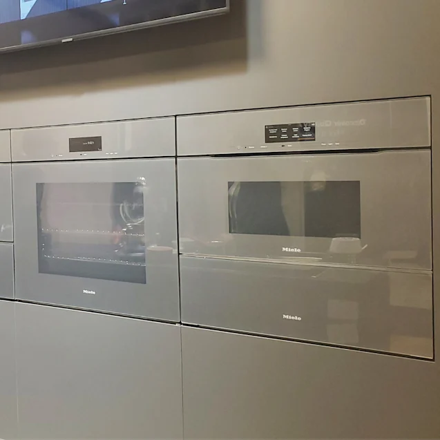 When it comes to kitchen design, less often means more. Hidden storage and clutter-free countertops, are some examples of how to apply this trend. Miele showcased modern kitchen appliances with grey and glass finishes, combined with a press-to-open feature, giving the appliances a sleek, contemporary look while eliminating the need for handles.